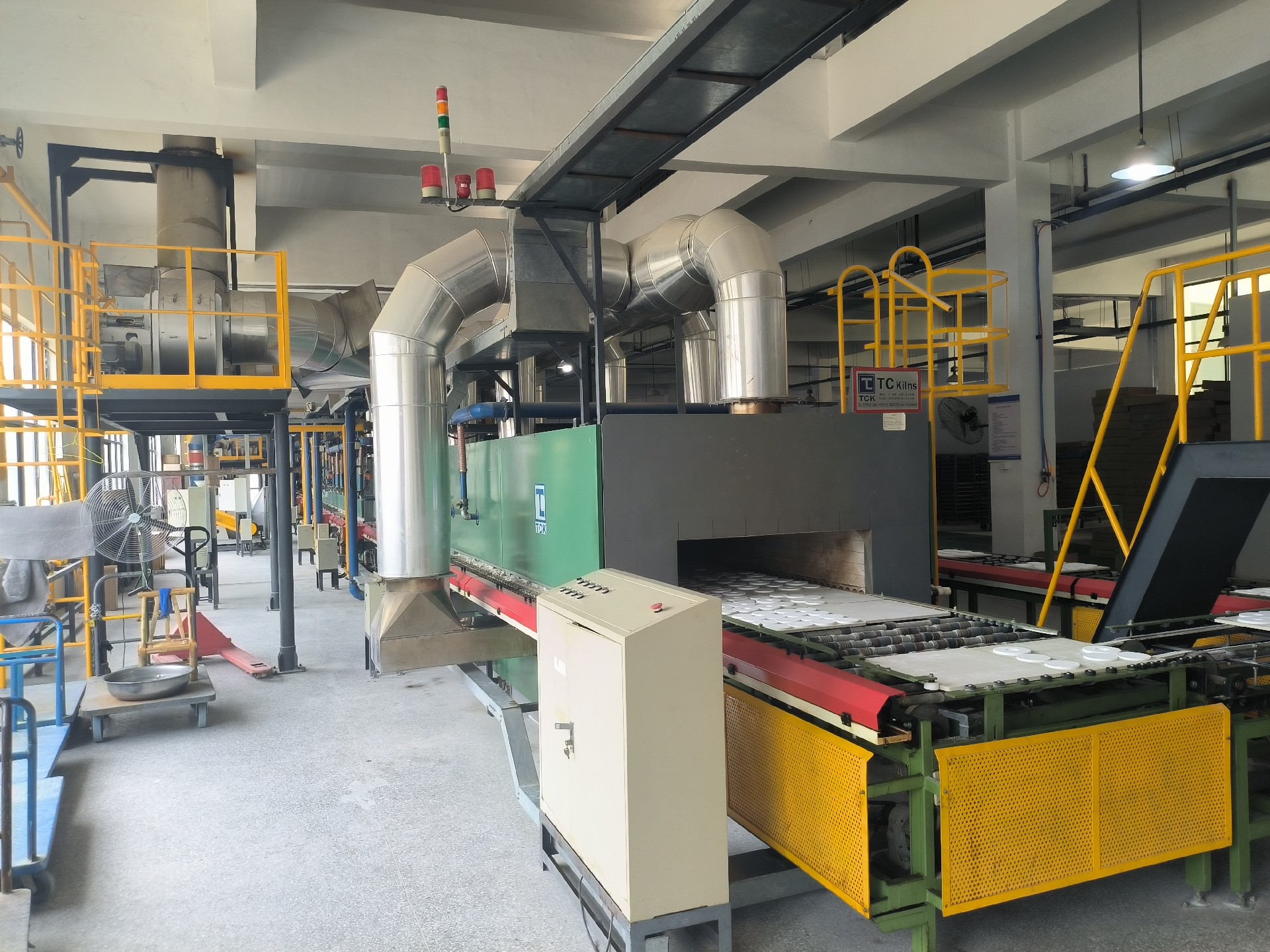 德國進口全自動施釉線,替代了手工施釉,減少了手工施釉存在的釉縷、釉層不均勻、釉屑等缺陷,大大提高了施釉質量和效率。